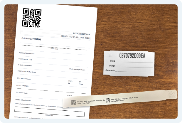 The Angelpaw System ensures complete traceability and transparency in pet aftercare services by using RFID tags, QR codes, or wristbands to track each pet’s location in real time throughout the cremation process. Every pet is assigned a unique code, allowing them to be individually monitored as they move through each stage of care. All order details are securely stored within their respective tags, providing quick access to accurate information while ensuring reliability, accountability, and peace of mind for pet parents and service providers alike..